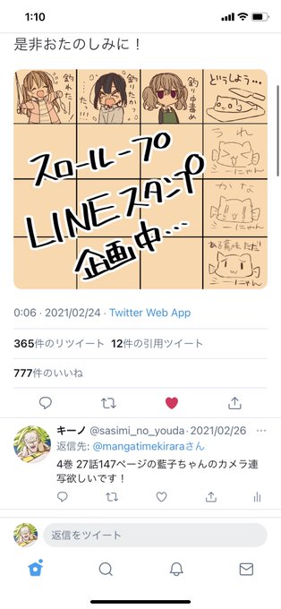 スローループのスタンプだァ!! もしかしてリクエスト見てもらえたのだろうか… 嬉しい……嬉しい…………