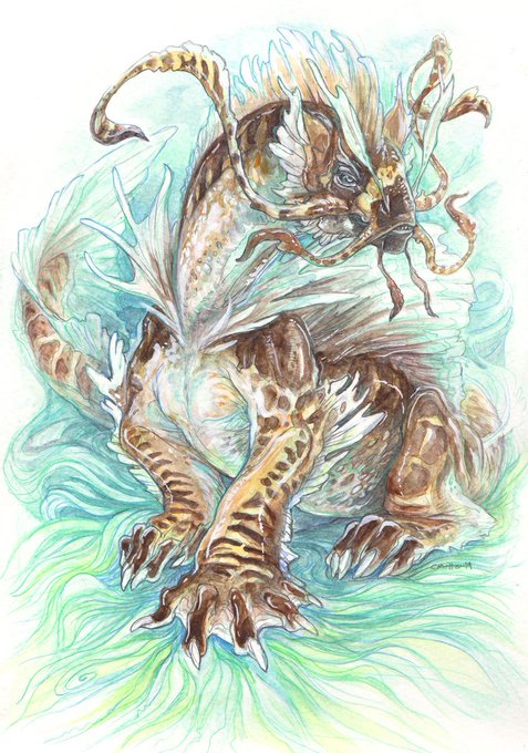 @DCMcNaughton 's drow druid... in hypothetical owlbear form. Watercolor/graphite.