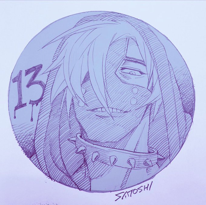 生徒からのリクエストで描く即興鉛筆画で色々なキャラを描いてて、これまで自分のタッチと近くて描きやすかったのはソル・バッドガイとコンパスのサーティーンでした。