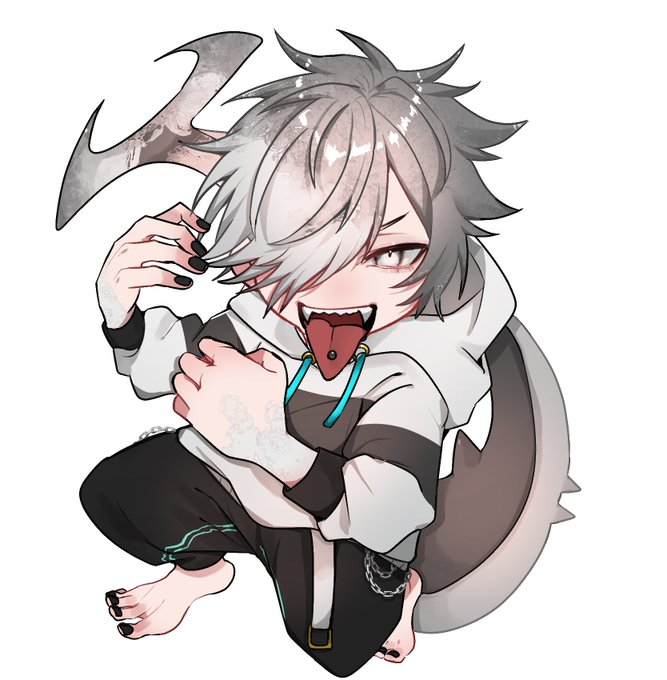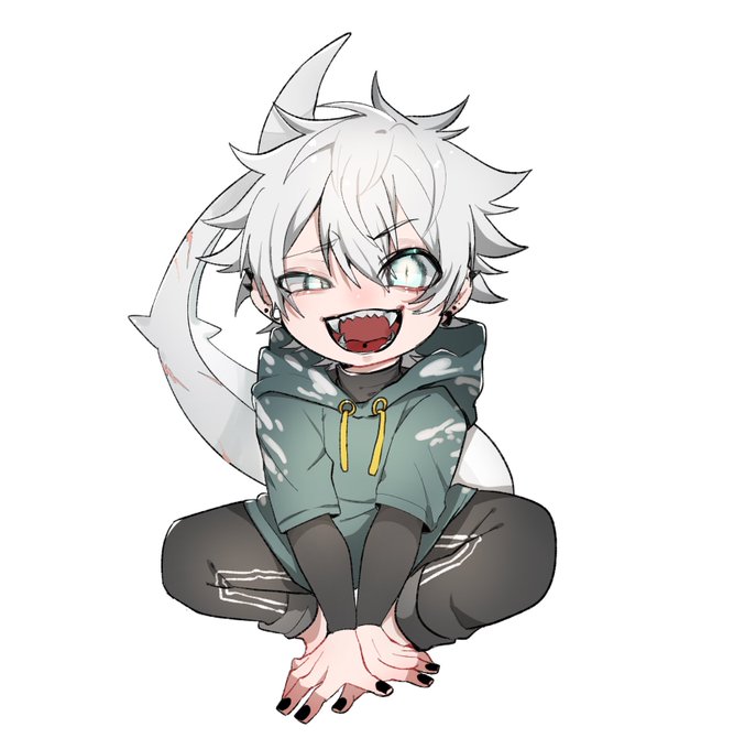 サメちゃん擬人化です🦈 ヨゴレ、ネコザメ、イタチザメ、ホホジロザメです🥰🦈