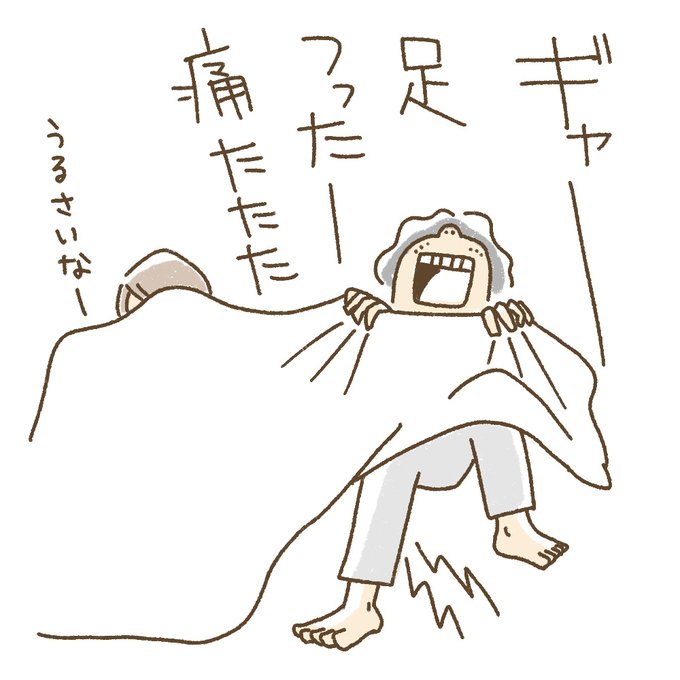 足つり https://t.co/LKGqy2pUcB #絵日記 #日常漫画 #エッセイ漫画 #夫婦漫画 #夫婦の会話 #イラスト日記 #足つり
