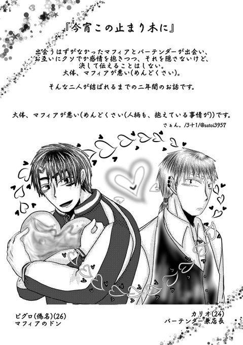 #看板娘看板息子を見ればその人の趣味思考がわかりそうだから紹介して 怠け者マフィア(右)とヤンチーバーテンダー(左)です。両片思いです(ここ重要)