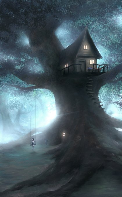 ツリーハウスとブランコが描きたかった(>_<) pixiv https://t.co/Bnts3piUva #イラスト #背景イラスト