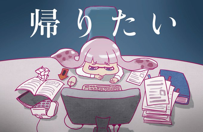 勤務先から帰れなくてやさぐれているイカちゃんを描いた #splatoon2 #スプラトゥーン2