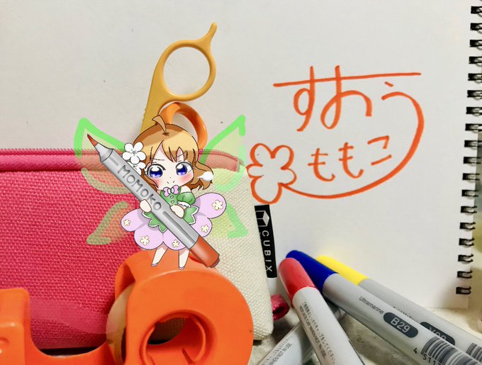 私の机に来てくれた桃子ちゃん。 頑張ってスケッチブックにサインを書いてくれました! #フェアリー桃子を探せ #フェアリー桃子だけど