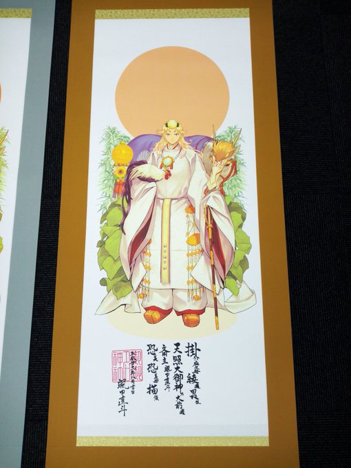 #巫女の日 巫女好きが高じて國學院大學に編入学、神職資格を頂きました。画像は神道文化学部の学部長室の外に貼られている俺のポスター(天照x須佐之男)、掛け軸、コミケの売り子の巫女さん(本物)。巫女漫画家から神道漫画家(公式)にクラスチェンジしました。監修ほかお仕事お待ちしてます。