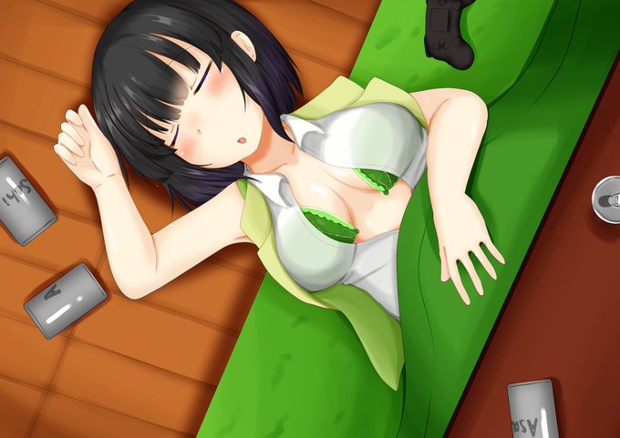 金曜日に家に帰ってきてビールをこたつに入りながら飲んでたらそのままねてしまったせいかさん と言うお題をもらったので 着替えてから寝ようとしてる途中で寝落ちしてる感じ