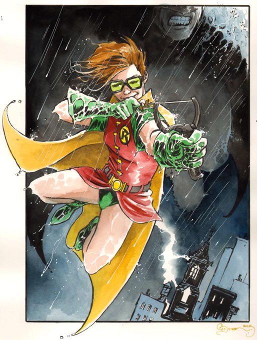 1 of my favorite con commissions from #eccc @emeraldcitycon this year. Carrie Kelley Robin & Batman. #watercolor