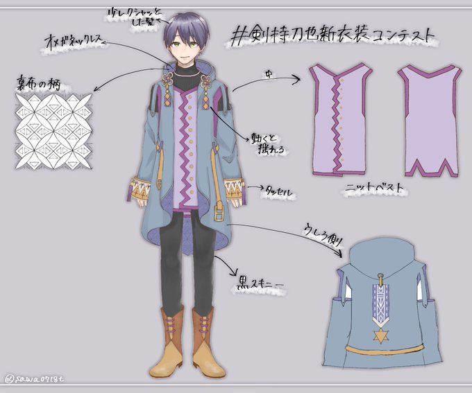 #剣持刀也新衣装コンテスト 和服多いかなって思ったのでエスニック風で考えてみました😸🌟 所々に▽あるので探してみてください︎︎(?)