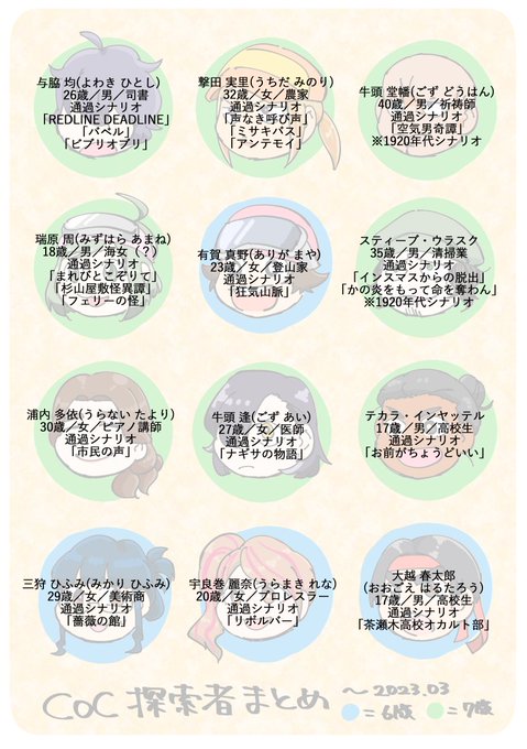 TRPG始めてから今までにつくった探索者のまとめ