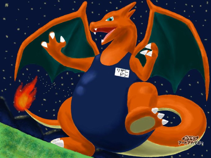 #3月なのでフォロワーさんに自己紹介しようぜ だいたい 「ヤドランの癒しのお腹抱き枕」 「夏季ハラリンピックスク水種目メダル候補リザードン選手」 などとわめいております。 スマブラSPとイラストもやってますよ🦈!!