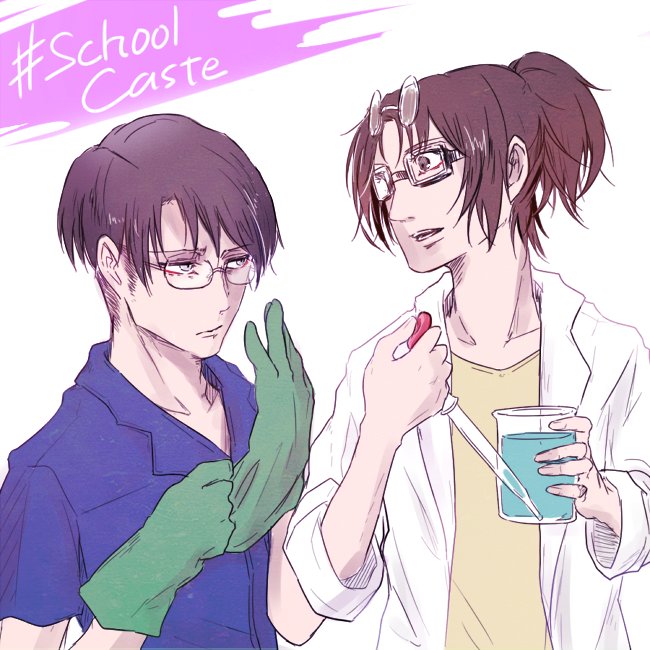 #リヴァハン版深夜の真剣お絵描き60分1本勝負 ゴーグル時のメガネの行方を考えた結果→掃除待ち清掃員さんの眼保護用(見えない)