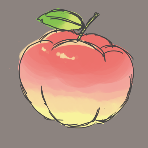 リンゴとカボチャと桃を足して3で割った感じのフルーツを錬成しています ※制作途中 ※販売・配布予定 #ゲーム素材 #アイテム #イラスト