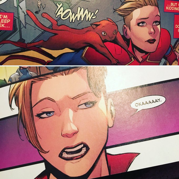 Catching up on some @Marvel #captainmarvel while I have my breakfast. The cat!! 🙀