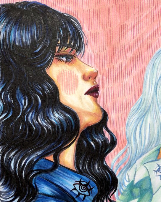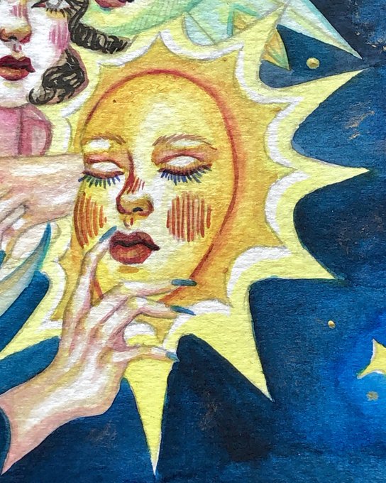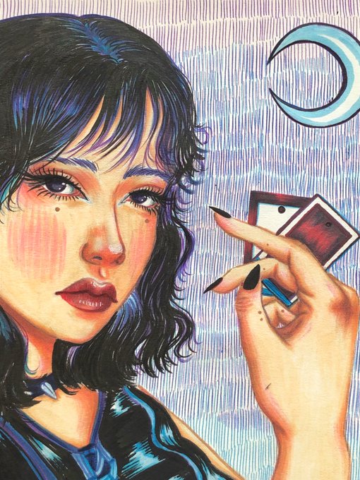 Moi c’est lyna je fais principalement du tradi et en ce moment je fais une série de carte basé sur le jeu du loups-garous ;)