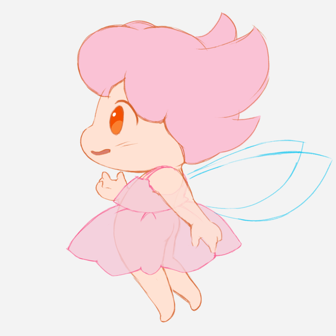 「名前のない桃色の人」。頭身高かったか。 #絵