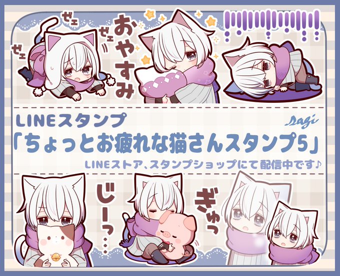 本日LINEスタンプ「ちょっとお疲れな猫さんスタンプ5」の配信を開始しました🐱💦