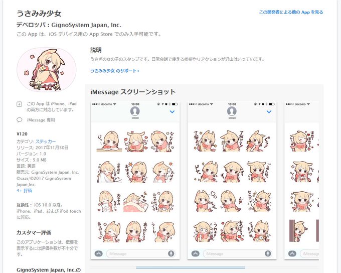 LINEをやっていない人も是非iMessageで「うさみみ少女」使ってみてくださいね。RTして頂けたら幸いです。よろしくお願い致します。