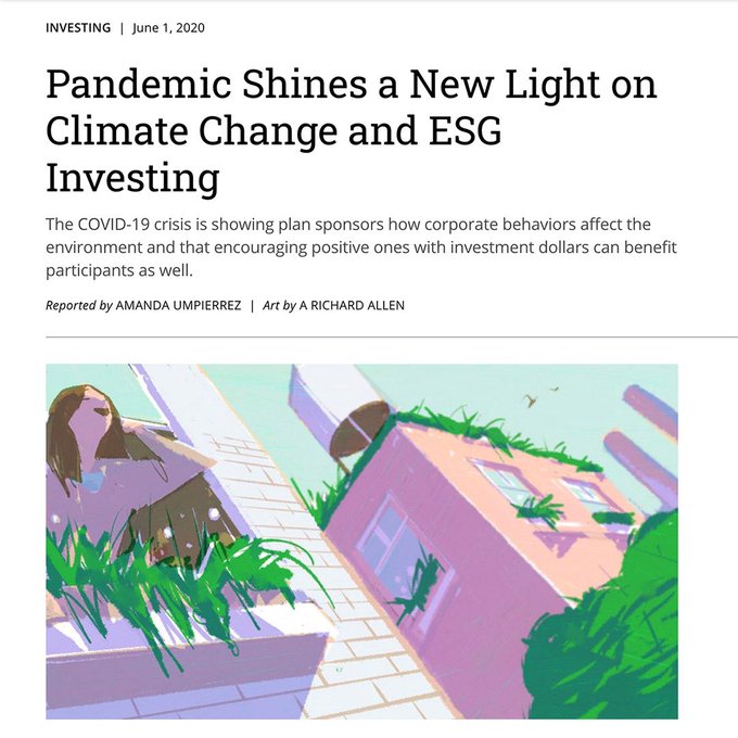 Art by @arichardallen for #PLANSPONSOR "Pandemic Shines a New Light on Climate Change and ESG Investing" #editorialillustration #artdirection