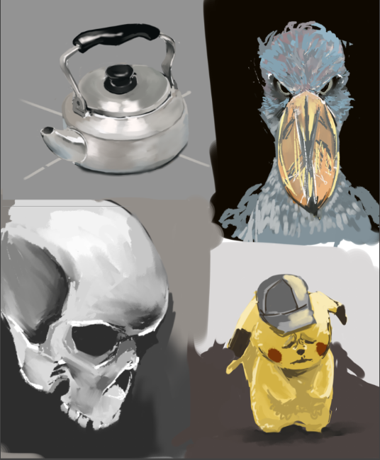 rkgk やかん、ハシビロコウ、がいこつ、ピカチュウ