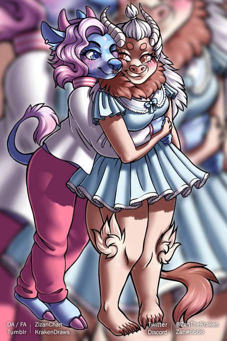 look at HOW CUTE my baby girls are, so happy with this commission 😭💖 (@/ZizanChan)