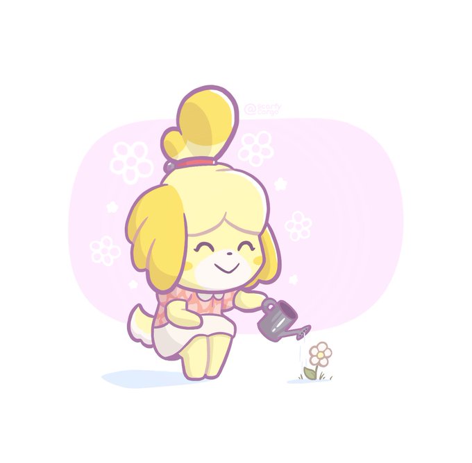 Isabelle watering a flower! 🐶🌺