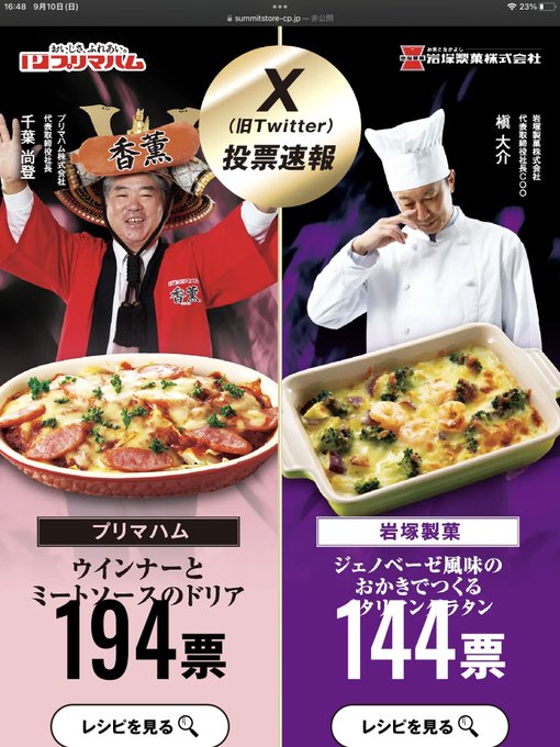 全体的に負けおじの方が味があるんだが、ミツカンの社長のちょんまげそういうカチューシャなんだ… あとチーズ対決僅差すぎる みんなでひっくりかえして森永の社長の負け画像もオープンしてほしい きっとかわいい
