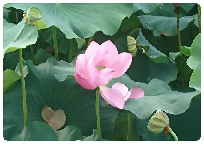 夕方だったので殆どの蓮花は閉じてましたが、咲き終わり散りゆく姿もとても美しかったです❁