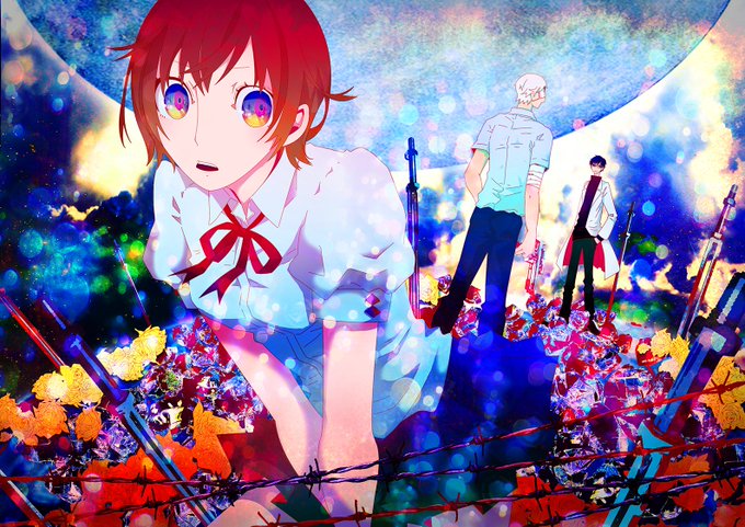 星と革命と坂口杏子06 元々白黒の扉だったんですが宣伝用に色付けてみたのとラフ