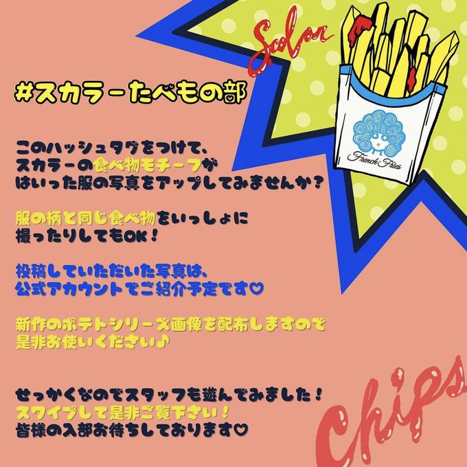#スカラーたべもの部 発足!╰( ^o^)╮-。・*・:≡🍟🍟 ▶https://t.co/i0dSDg4EaY #ScoLar #スカラー #着るアート #個性的 #ハデカワ