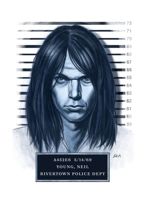 New work: Neil Young is prosecuted for shooting his baby down by the river. Used the great brushes by @kyletwebster