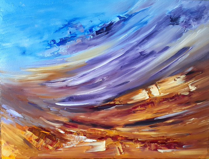 Knife Painting Abstract Landscape in oils - Flinders Ranges South Australia