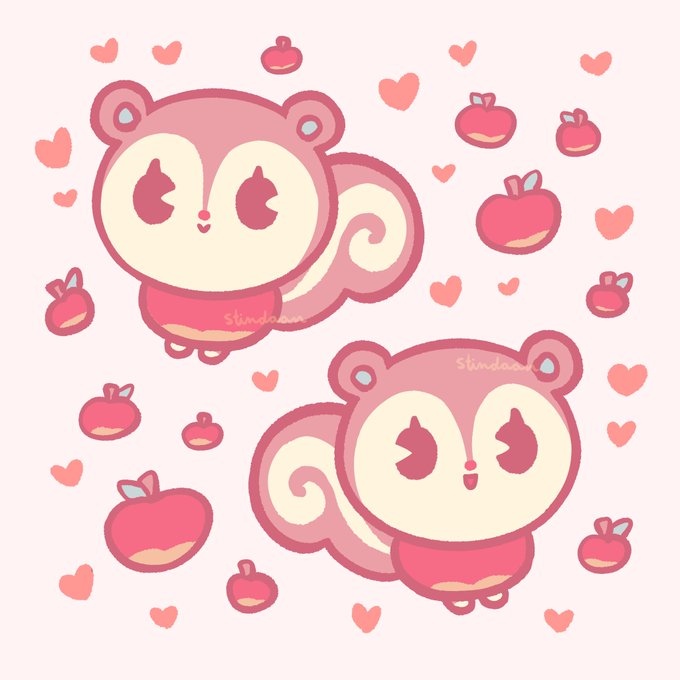 ( #ACNH #AnimalCrossing ) I saw a picture of Poppy with apple body... same like Peach Marshal... I had to draw it 🥺🐿🍎 (source tweet below)