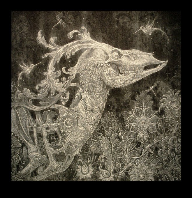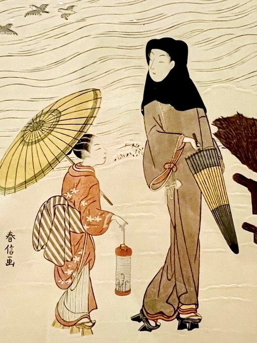 紙に凹凸をつける「きだめし」の摺り技法で降り積もった雪の畝を表現した春信の作品に対し、美蘭の作品は降りしきる雪…のような口からの飛沫がエンボス加工されていて、コロナ禍の現代に思いを致させる。