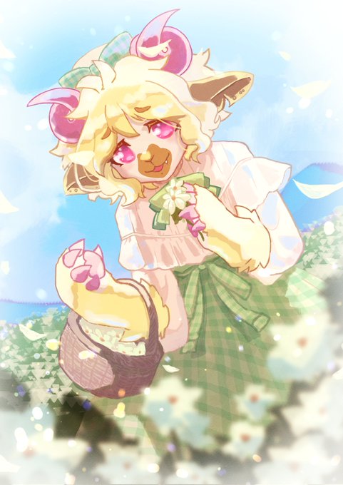 POV: You took your sheep girlfriend for a walk to the meadows. She picked flowers for you while you napped, what a lovely date 🌼🐑