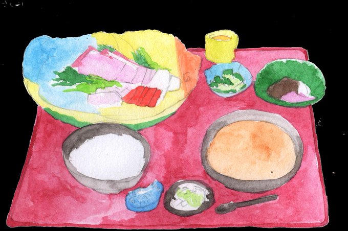 注文がありました、メニュー用のイラスト。これは、刺身定食。 こんなのも描けます。