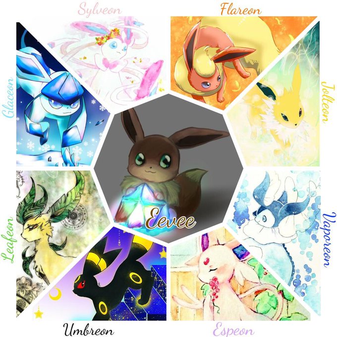 かめちゃん(@Blue_Sketch247)の企画に参加させて頂きました〜!!グレイシア担当❄️❄️❄️ありがとうございました〜🙏🙏 #みんなでブイズ集合絵