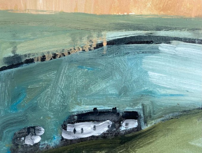 Walking on the moor 80x30cm Acrylic on canvas Dm to buy. £175