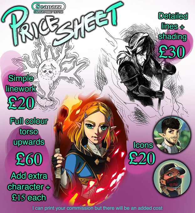 @ScottNiswander Hey i'm a tattoo artist from the UK which means i'm out of work until further notice, so i'm spending my time doing commissions in various styles. Here are some examples ^_^