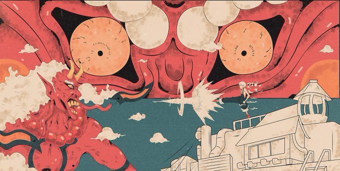 Last but not least this artists work is based on Japanese artstyles with a great use of the colour red and (green or blue?)