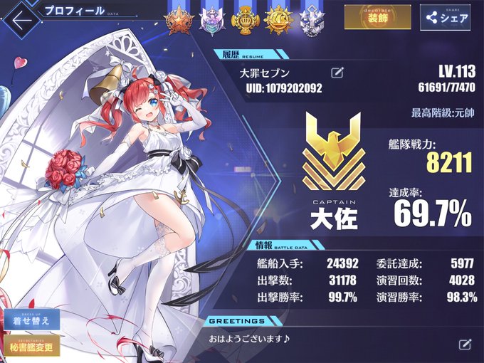 #メンテなのでアズレンプロフィールを一言添えて貼る #メンテなのでアズレンプロフィールを無言で貼る #若松鯖