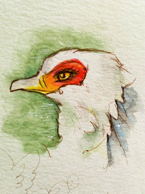 なるだけ青を使わない縛りでヘビクイワシ&じゃがぴよさん(可哀想)。