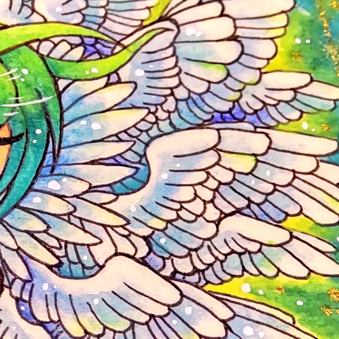 こちらは明るいトコで見ると殆ど補正の要らないレベルの原色全開イラストを水彩色鉛筆で描いています…透明水彩の透明って何だろう(遠い目)✨