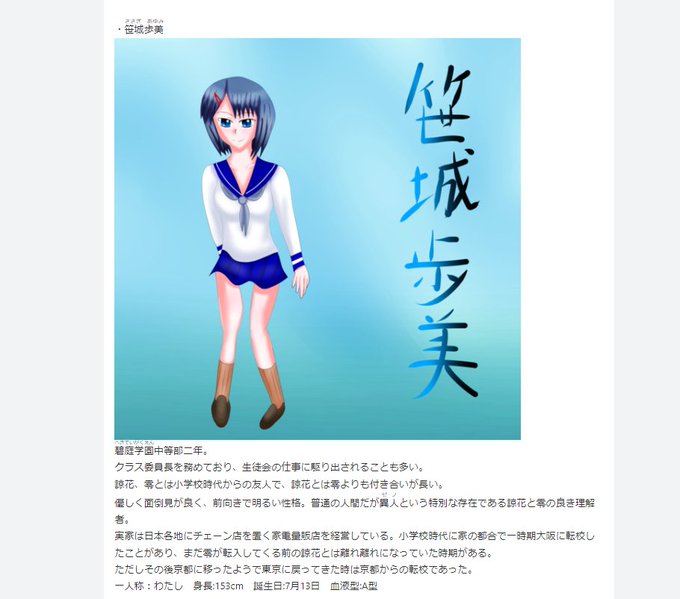 ソルジャーでは最初は一般人だが異能者になっていく。人狼少女では諒花の親友であり実は監視役という。