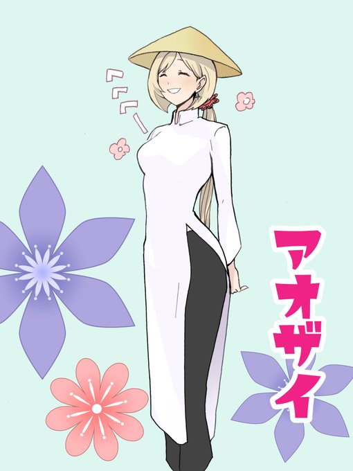 アオザイ大好きなんですよアオザイ ベトナムの伝統的な服装ね☆ 👍😙👍似合ってる〜フゥー♪ #アロ絵