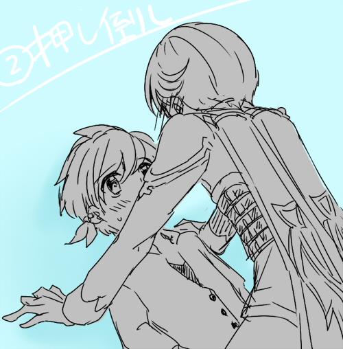 #フォロワーさんの好きな要素を詰め込んだミクスレを描く 「押し倒してるミクスレ」 私の画力がもっと上がったら綺麗に描き直したいです(本日の挫折)