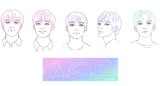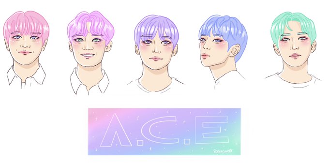 a.c.e with fanship hair colors !! I pretty much assigned them by just what I’d like to see the boys try, tho Sehyoon has had green hair before