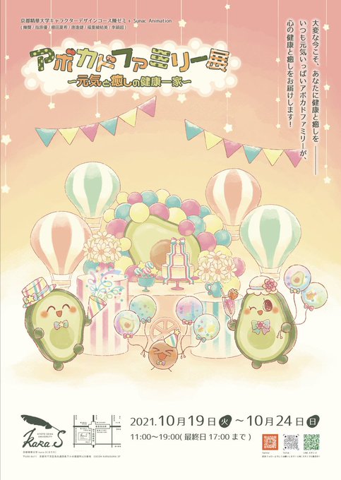 10/19(火)〜10/24(日)に、四条烏丸の【kara-S】にて、本コースの陳ゼミによる企画展「アボカドファミリー展 ~元気と癒しの健康一家~」が開催されます🥑