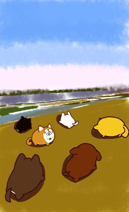 # 画力変化ビフォーアフター 犬編 2017年6月?、2017年8月、2018年11月??、2019年5月 犬、最近描いてない…(先月描いたアイコンを見つつ)