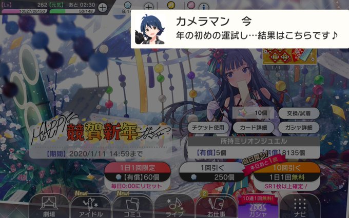 ありがとうアイドルマスターミリオンライブシアターデイズ1日1回無料10連ガシャ